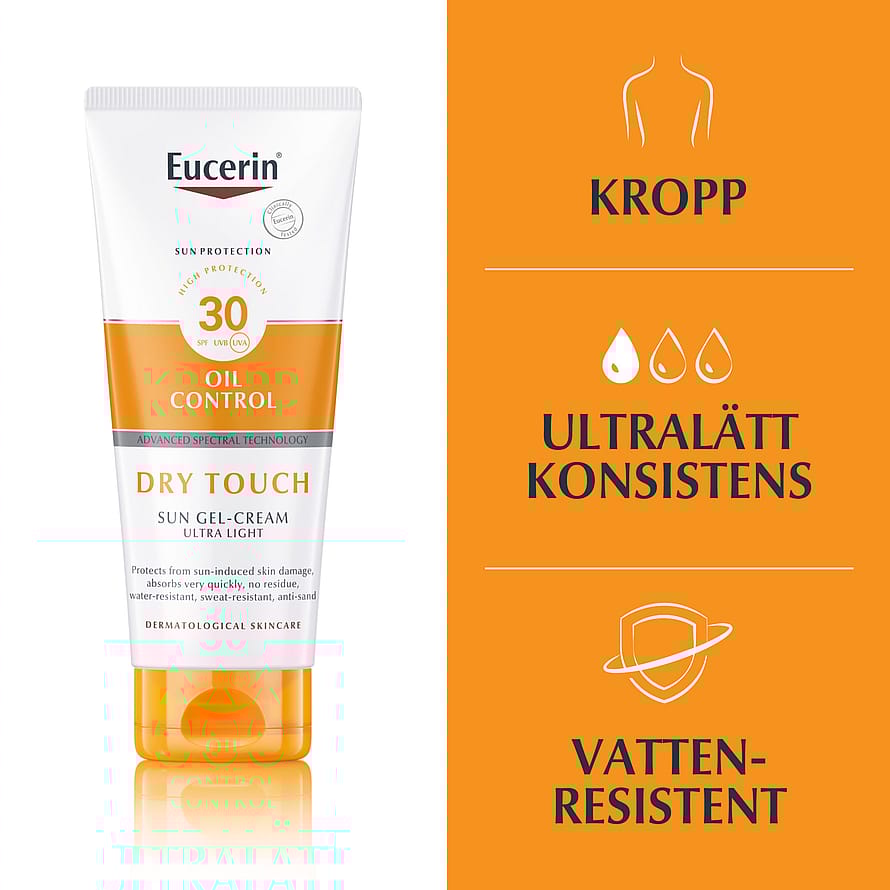 Eucerin Sun Body Oil Control Dry Touch SPF30 är en solgel-creme för kroppen med högt solskydd.