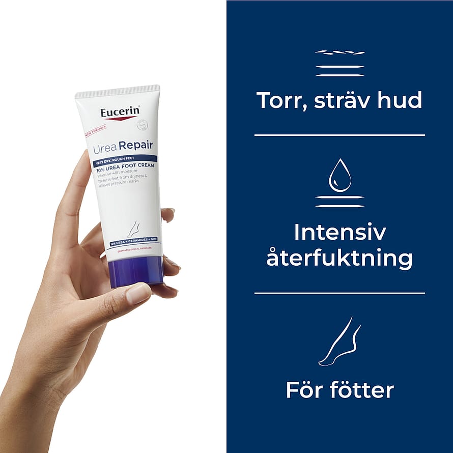 Eucerin UreaRepair 10% Urea Foot Cream är en mjukgörande fotcreme som återfuktar och lugnar torra fötter.