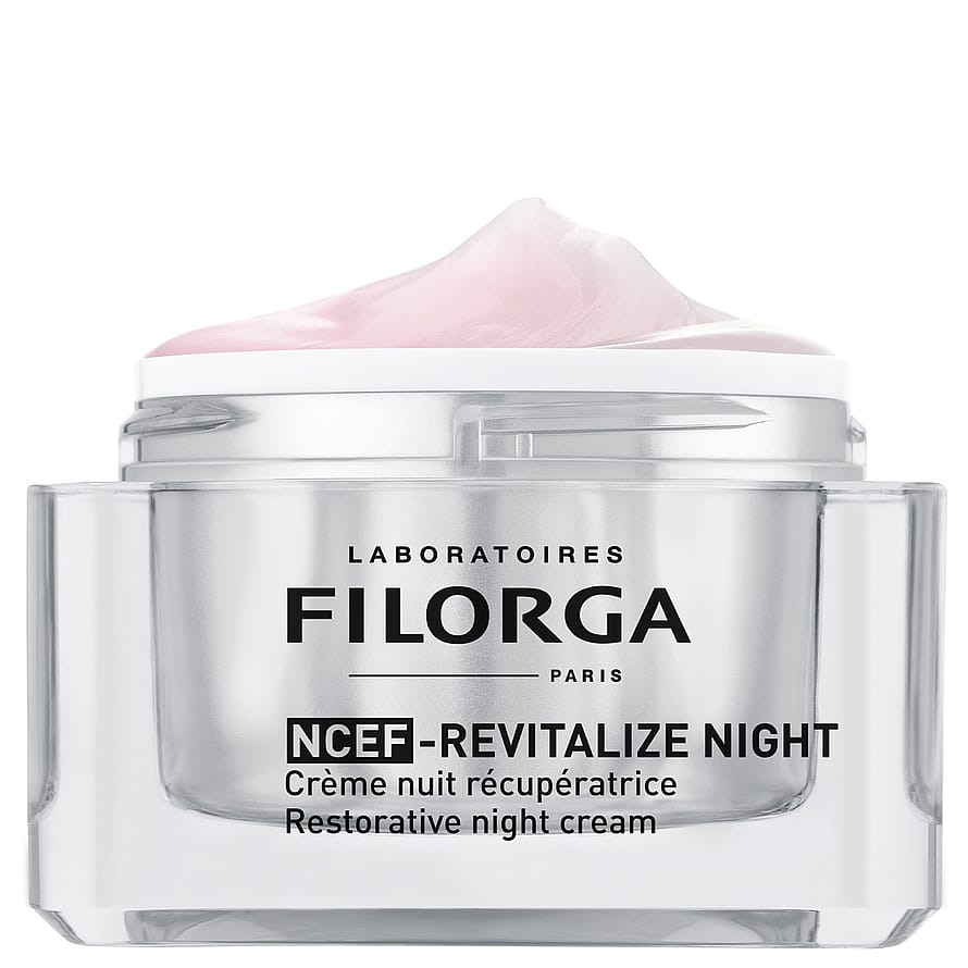 Vakna upp med en slätare, mer strålande och revitaliserad hud med NCEF-Revitalize Night från FILORGA. Denna anti-age-nattkräm är inspirerad av revitaliserande injektioner inom estetisk medicin och verkar under natten för att stödja hudens förnyelseprocess och minska tecken på trötthet, glåmighet och ojämn hudton. Formulan innehåller en hög koncentration av NCEF och ett aktivt trippelkomplex: Ett anti-rynkpeptid (matrikines) stärker hudens naturliga reparationsmekanismer, medan Tephrosia purpurea (en ärtväxtart) – känd för sin förmåga att reglera stressrelaterad hormonaktivitet – skyddar mot oxidativ stress och ger huden ny lyster. Niacinamid (2 %) hjälper till att reducera rodnad och åldersfläckar, stärka hudbarriären och jämna ut hudtonen. Den fräscha, omslutande geltexturen absorberas snabbt och ger komfort och återfuktning under natten. Passar alla hudtyper.
