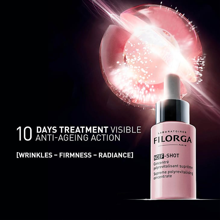 NCEF - Intensiv förnyelse av hudkvaliteten med dess formula som innehåller ultra-koncentrerad NCEF, unikt polyrevitaliserande komplex utvecklat från Laboratories FILORGA med 50 ingredienser, för första gången i koncentrationer jämförbara med dem som används i en meso-injektion.