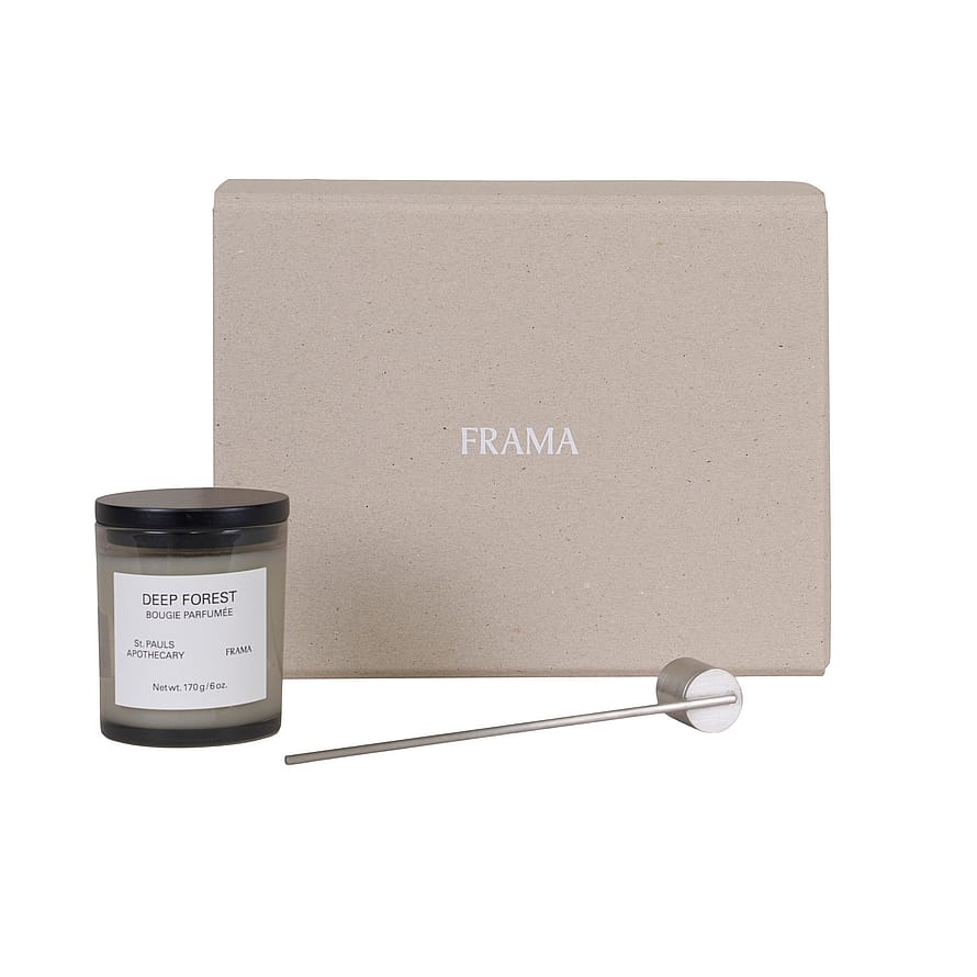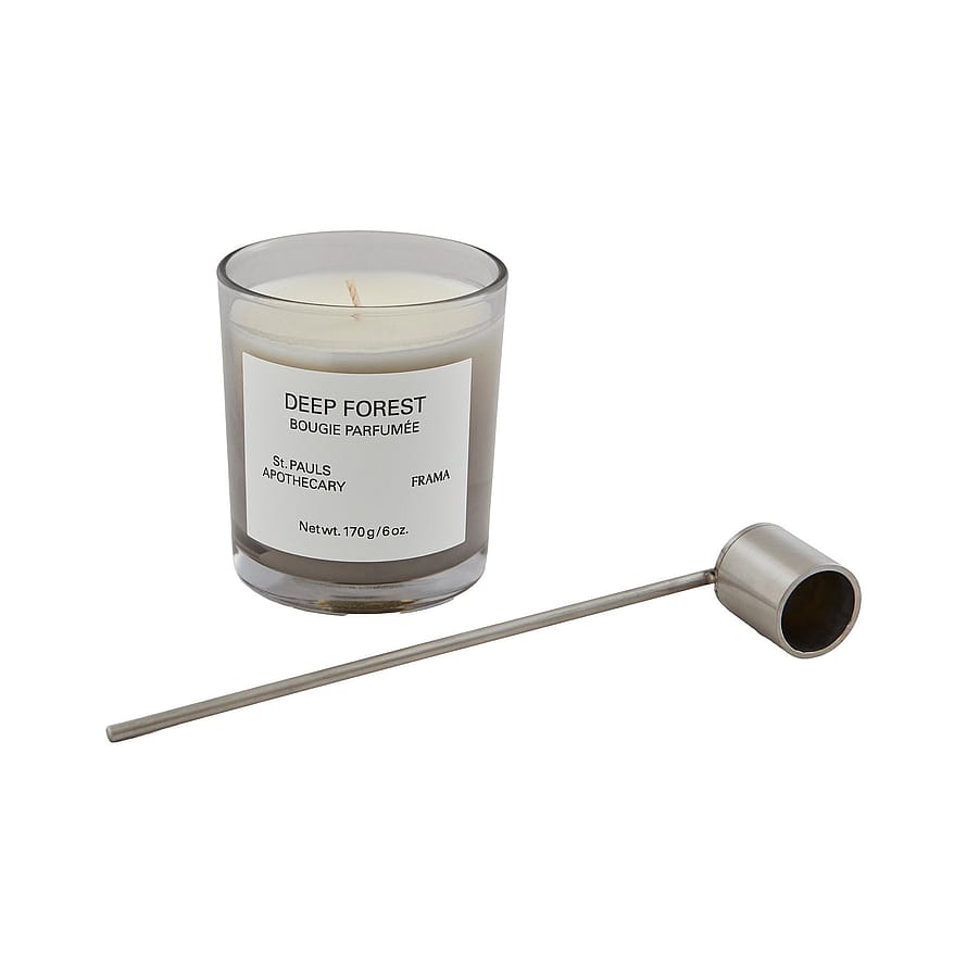 En duo som skapar atmosfär i alla rum. Den jordiga och örtiga doften från Deep Forest Scented Candle är inspirerad av de vilda Abies-granskogarna i Korea. En doft som blandar jordnära gröna nyanser med milda blommor, vilket skapar en känsla av både längtan och förväntan om nya början. Candle Snuffer, en modern tolkning av den klassiska snuffern, är tillverkad av både fint och hållbart rostfritt stål. Snuffern utvecklar med tiden en vacker patina.