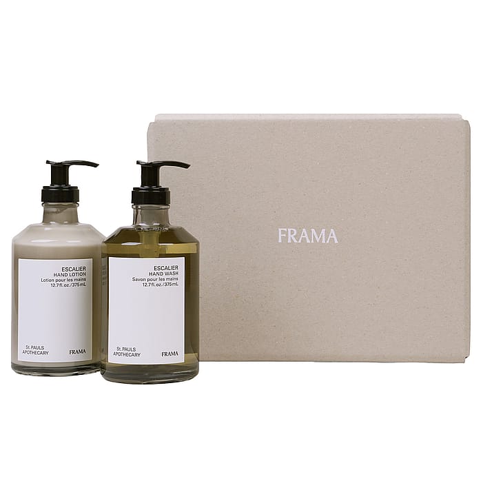 Oavsett om det är för att ge en älskad en present eller överraska en vän med en omtänksam gåva, kommer FRAMAs presentlåda att uppskattas. Med kollektionens signaturdoft innehåller denna duo Escalier Hand Wash och Hand Lotion som håller huden återfuktad och mjuk samtidigt som den sprider en behaglig doft, framhävd av aromatiska noter av morotsfrö, kardemumma, vetiver och blodapelsin.
