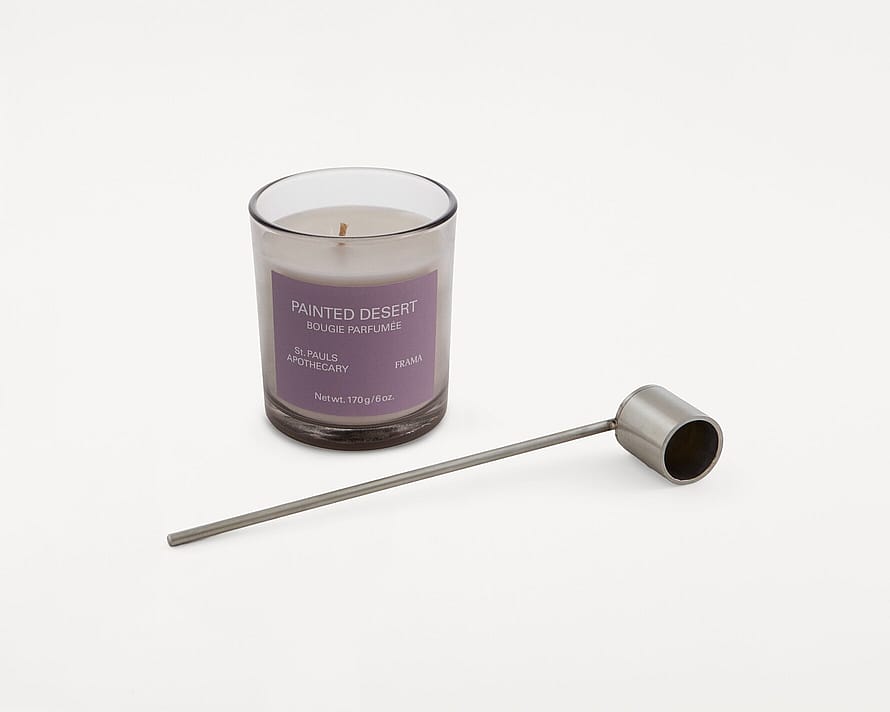En duo som skapar stämning i alla utrymmen. Painted Desert är en doft född ur ett landskap som väcker sinnena med sin storslagenhet och sina färger. Noter av salvia, rökelse, cederträ och sandelträ bildar en grund av råa element, mjukt skiktad med daggfrisk klarhet där solens hetta möter markens svala andetag. Ökenhetta och uråldrig sten. Jord och luft i stillsam dialog. Candle Snuffer, en modern tolkning av den klassiska snuffern, är tillverkad av både ömtåligt och hållbart rostfritt stål. Med tiden utvecklas snuffern och får en vacker patina.