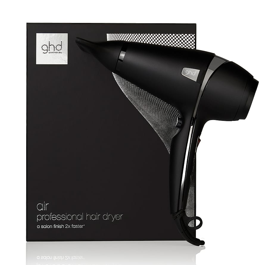 "Få vackert hår på halva tiden* med ghd air® professionell hårfön. Den kraftfulla motorn på 2100 W** med professionell styrka och det patenterade avtagbara luftfiltret ger ett högt luftflöde för snabb torkning, medan avancerad jonteknik minskar frissighet och flygigt hår för att ge en slät salongsfinish på halva tiden*. Variabel effekt- och temperaturkontroll gör att du kan anpassa föningen efter din hårtyp, medan en cool shot-knapp hjälper till att fixera din styling. Den ergonomiska designen gör den bekväm att hålla i för både vänster- och högerhänta användare.