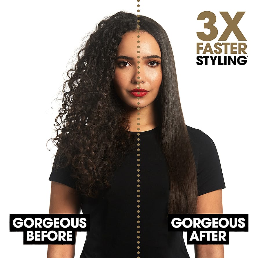 3. För en slät och rak look: Placera stylern vid rötterna och glid nedför sektionen. Använd en borste för extra spänning och släthet