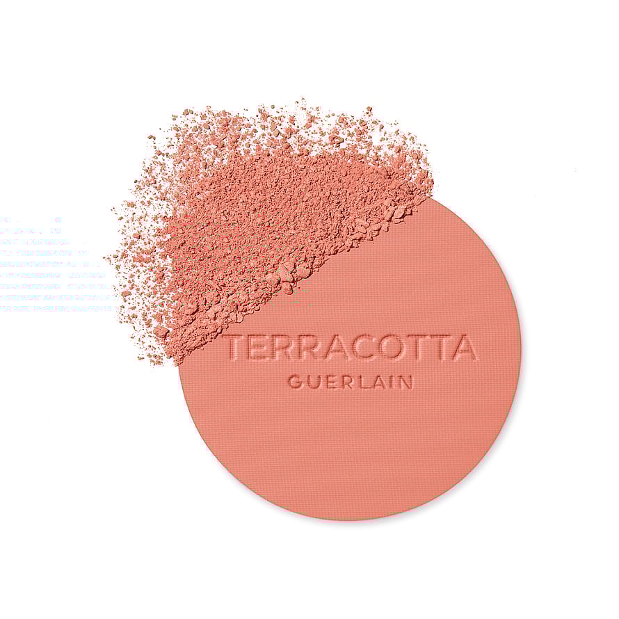 Terracotta Blush, som består av 90% naturligt framställda ingredienser¹, framhäver kindbenen med en delikat nyans som påminner om den fräschör som stiger upp på kinderna efter en utflykt utomhus. Med sin lätta och luftiga konsistens avslöjar detta långvariga² och bekväma puderrouge hudens naturliga undertoner under en perfekt balanserad, ultrauppbyggbar och second skin-färgslöja. Guerlain är djupt kopplad till naturens skådespel och har designat en palett med 8 rodnadsnyanser som återspeglar jordens ursprungliga spektrum. Nyanser med en matt eller pärlemorskimrande finish för ett makeupresultat med en byggbar intensitet. Fem toner - beige, nude, rosa, korall och röd - var och en finns i två intensiteter: ljus och djup. De kan användas för att matcha din hudton och dina personliga preferenser. ¹Baserad på ISO 16128-standarden. De återstående 10% bidrar till produktens integritet, sensorik och pigmentering. ²Instrumentellt test och klinisk utvärdering på 30 kvinNor.