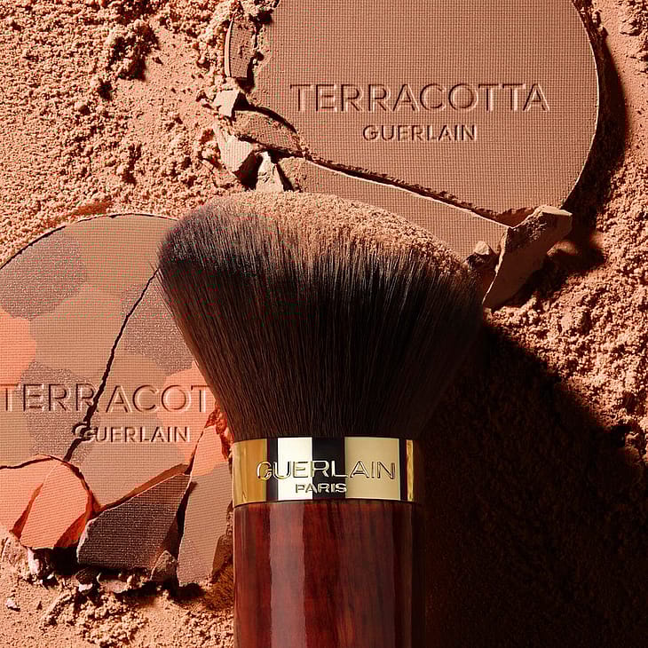 Terracotta Kabuki Brush är gjord som den idealiska följeslagaren för alla Guerlain-puder. Kvastens sluttande och generösa design gör det möjligt att arbeta med alla typer av puder efter önskemål.