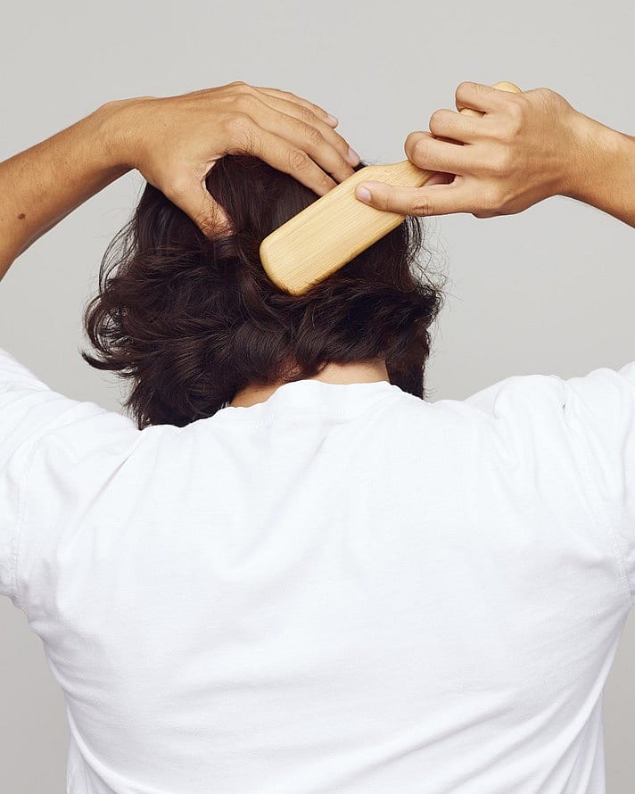 Borsta igenom håret varsamt för att undvika skador på hårstrån och hårsäckar. Börja med topparna och arbeta dig uppåt mot rötterna för att reda ut håret med borsten.