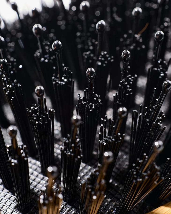 För att rengöra borsten börjar du med att ta bort håret från piggarna och slänga dem. Tvätta denna bambuborste med vatten och låt den lufttorka med piggarna liggande nedåt.