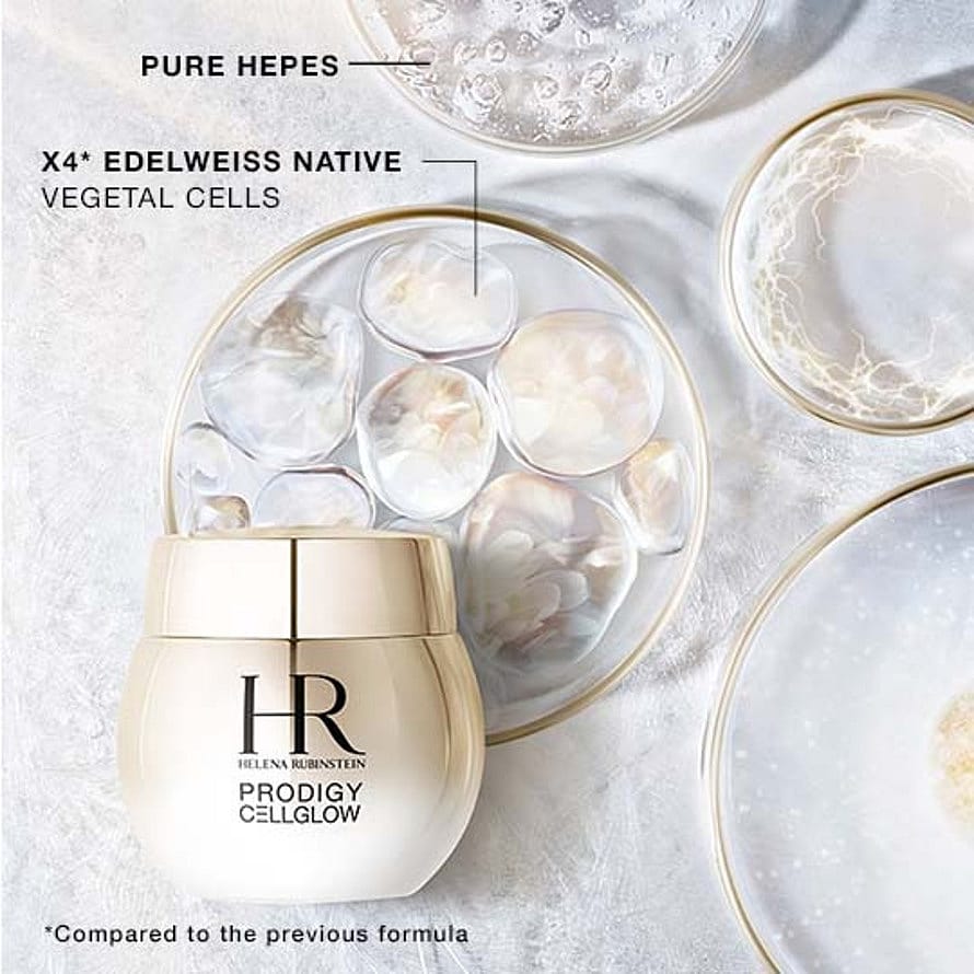 Precis som resten av Prodigy Cellglow-serien innehåller krämen även edelweissextrakt. 2012 inleddes ett nytt partnerskap med dr Jean-Marc Lemaitre, forskningsdirektör på INSERM, Europas ledande biomedicinska forskningsinstitut.