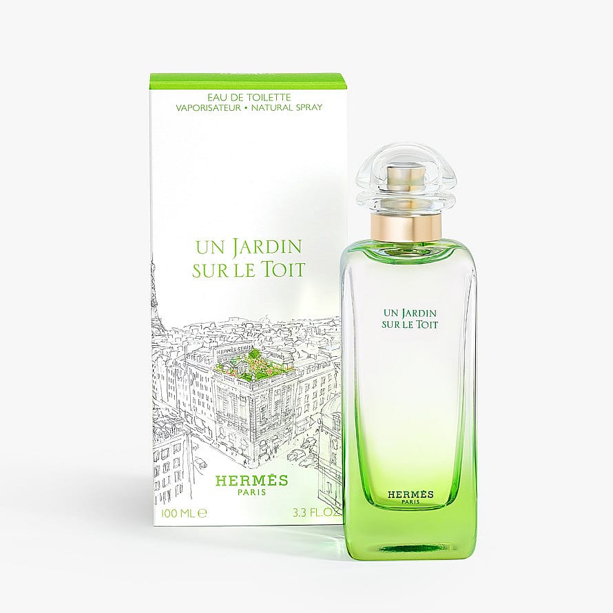 Un Jardin sur le Toit eau de toilette berättar historien om en gömd trädgård, inbäddad i hjärtat av staden, i Paris. Ett stycke natur på Hermès hustak på 24, rue du Faubourg-Saint-Honoré. Denna doft skapades av parfymören Jean-Claude Ellena 2011 och är en hyllning till denna trädgård av glädje och fest.