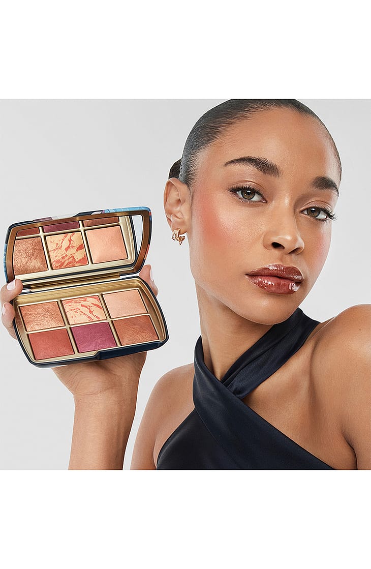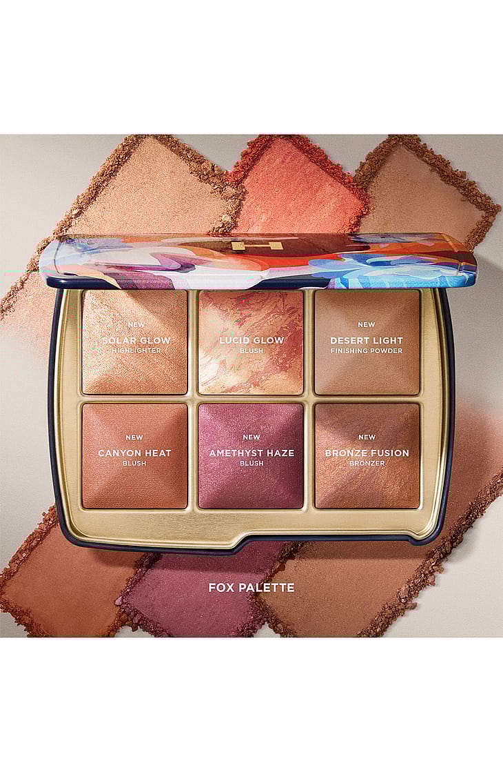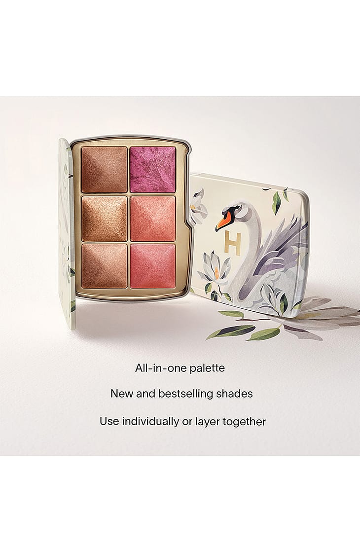 Exklusivt tillgänglig för Holiday 2025, denna ansiktspalett innehåller fem nya Ambient Lighting-nyanser för att skapa din perfekta rodnad och inifrån-glöd. Den begränsade utgåvan har unik konstverk av den ukrainska tatueringskonstnären Sasha Unisex, som hämtar inspiration från naturen och djur och är känd för att förvandla sina djärva, geometriska akvarellmålningar till tatueringar.