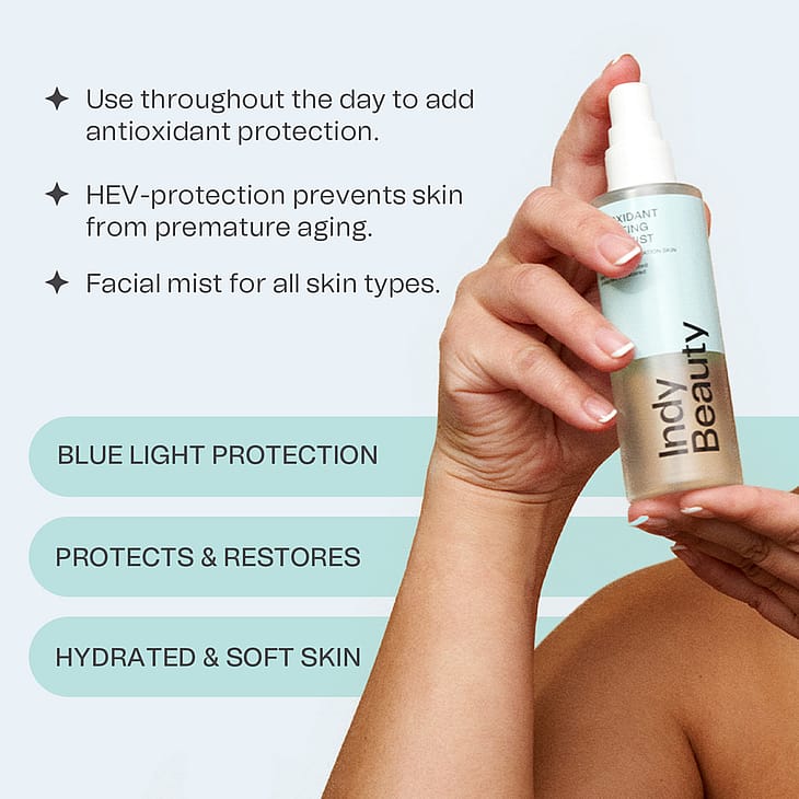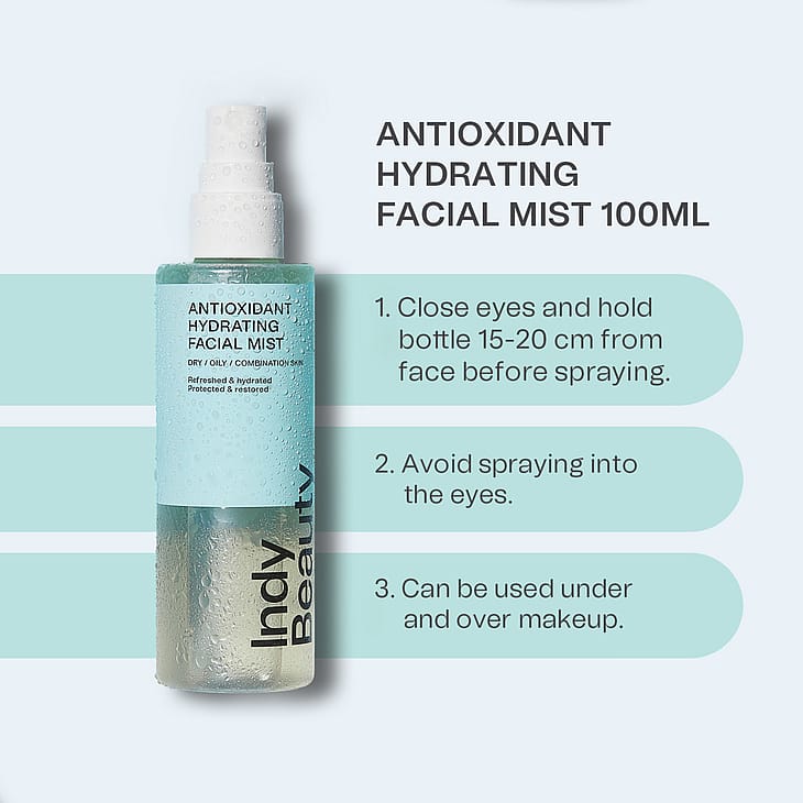 Återfuktande och svalkande ansiktsmist som fräschar upp huden under dagen. Innehåller kraftfulla antioxidanter från doftviska som skyddar mot oxidativ stress och fria radikaler, bland annat orsakat av blue light från dator och mobiltelefon. Hyaluronsyra binder fukt till huden medan vitamin C piggar upp och ger lyster. Kan användas för att fixera smink.
