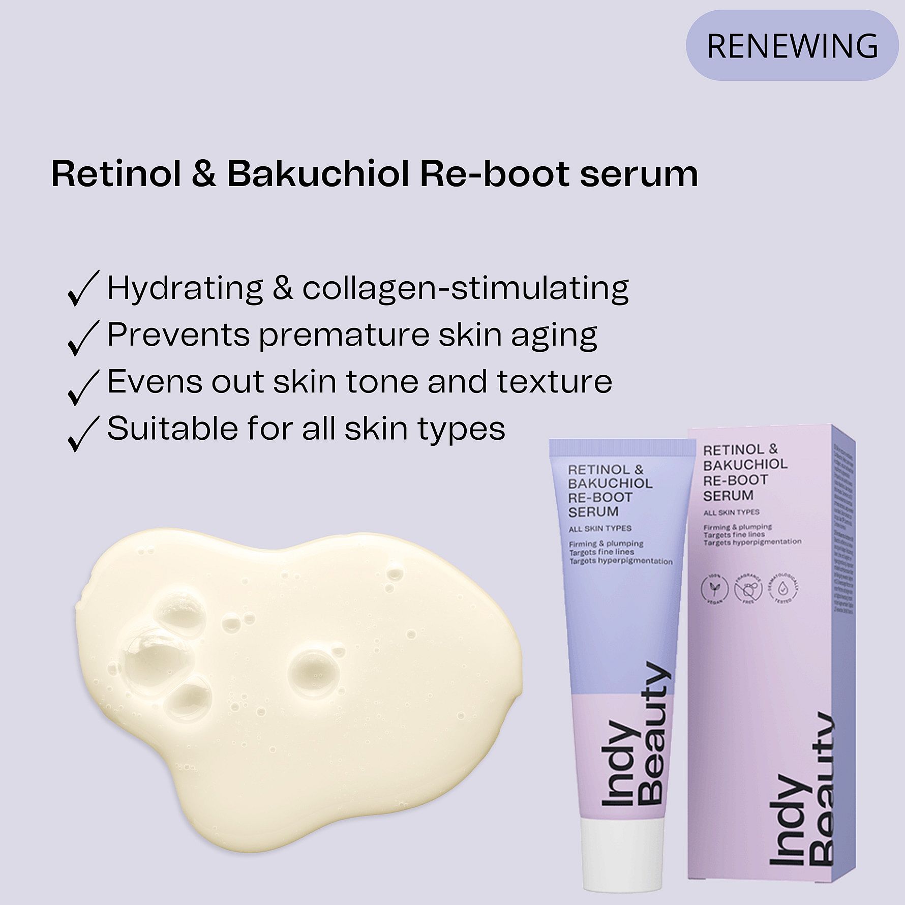 Re-vitaliserande nattserum för den mogna huden med en kombination av 0,05% retinol och 0,5% bakuchiol som tillsammans förstärker varandras effekt för att förbättra hudens struktur och minska synligheten av fina linjer. Serumet är särskilt framtaget för dig som har svårt att hitta retinolprodukter som huden tolererar. Hyaluronsyra tillför intensiv fukt, medan havreolja och squalane mjukgör och återställer hudens naturliga barriär. Serumet ger inte bara djup näring utan främjar också kollagenproduktionen, vilket resulterar i en en hälsosam lyster och studsigare hud.