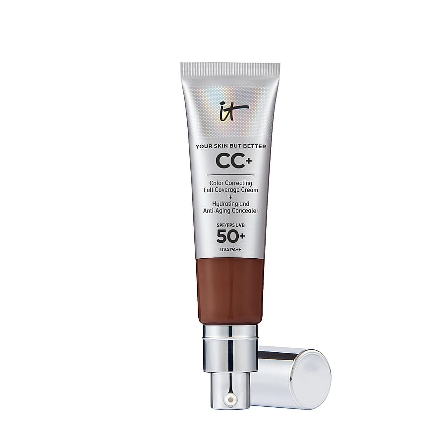 IT Cosmetics Your Skin But Better CC+ Cream SPF 50+ är vårt skönhetsmirakel och ger dig 7 produkter i en - foundation med hög täckning, färgkorrigering, återfuktande serum, primer, concealer, fuktgivande dagcreme och SPF 50+. Denna bästsäljande* och prisbelönade CC Cream, är framtagen tillsammans med plastikkirurger och återfuktar huden samtidigt som den hjälper till att släta ut ojämnheter för en jämn och naturlig täckning som inte spricker. Denna multiverkande produkt innehåller hydroliserad kollagen, peptider, niacin, hyaluronsyra, antioxidanter och vitaminer, och är ett måste för omedelbart jämn och strålande hud!