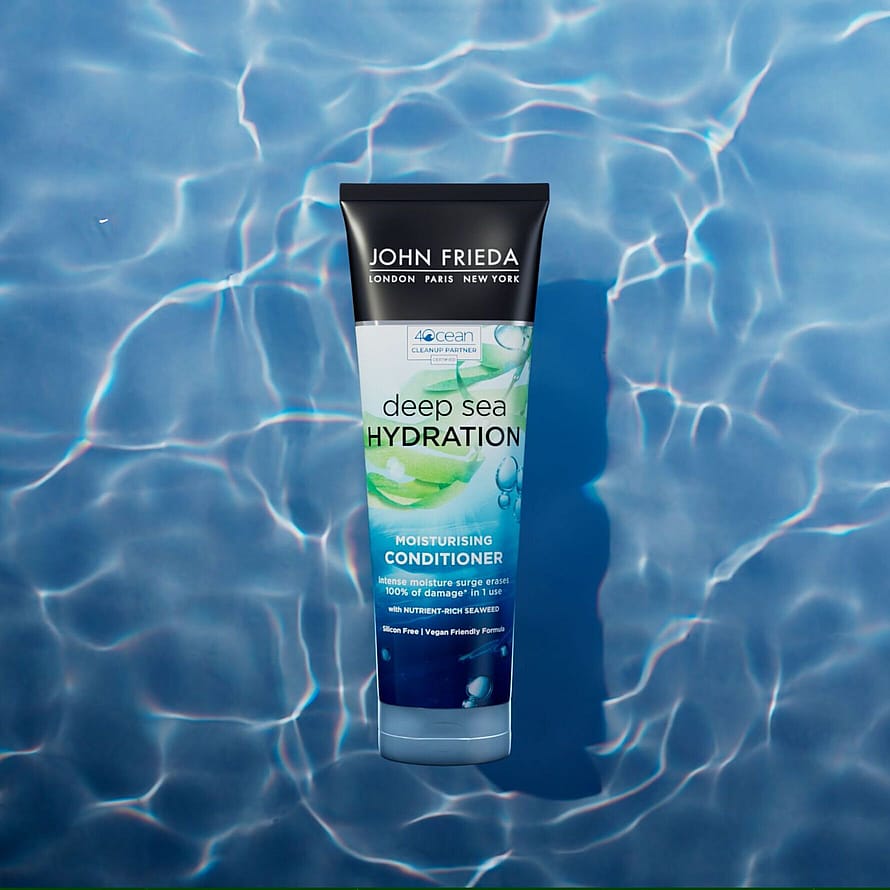 Ger intensiv fukt som raderar 100 % av skadorna* vid första användning. Detta silikonfria balsam innehåller näringsrik tång och ger omedelbart fukt till torrt hår. *Skador på ytans jämnhet. Veganvänlig - Silikonfri. 4OCEAN-PARTNERSKAP - Bättre för miljön. John Frieda Deep Sea Hydration Collection arbetar med 4ocean för att bekämpa plastkrisen och bidrar till att minska det totala plastavfallet i haven.