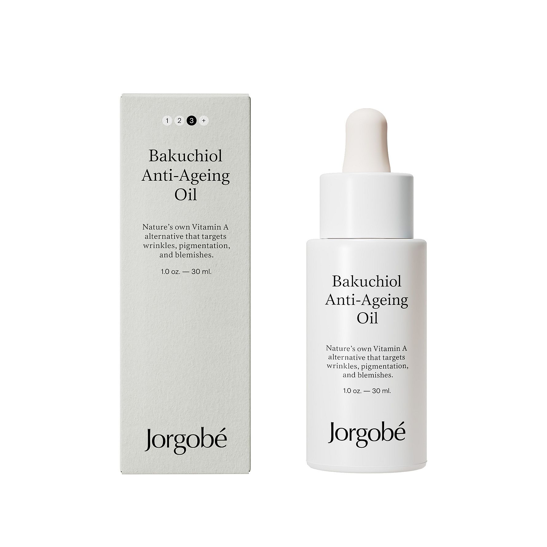 Återställ huden med Jorgobé Bakuchiol Anti-Ageing Oil – en ansiktsolja som innehåller bakuchiol, ett naturligt alternativ till retinol. Bakuchiol reducerar synligheten och uppkomsten av rynkor, och formulan innehåller även C-vitamin och antioxidanten Q10 som motverkar pigmenteringar och främjar en slät och återfuktad hud. En perfekt ansiktsolja för dig som vill reducera eller motverka synliga ålderstecken.