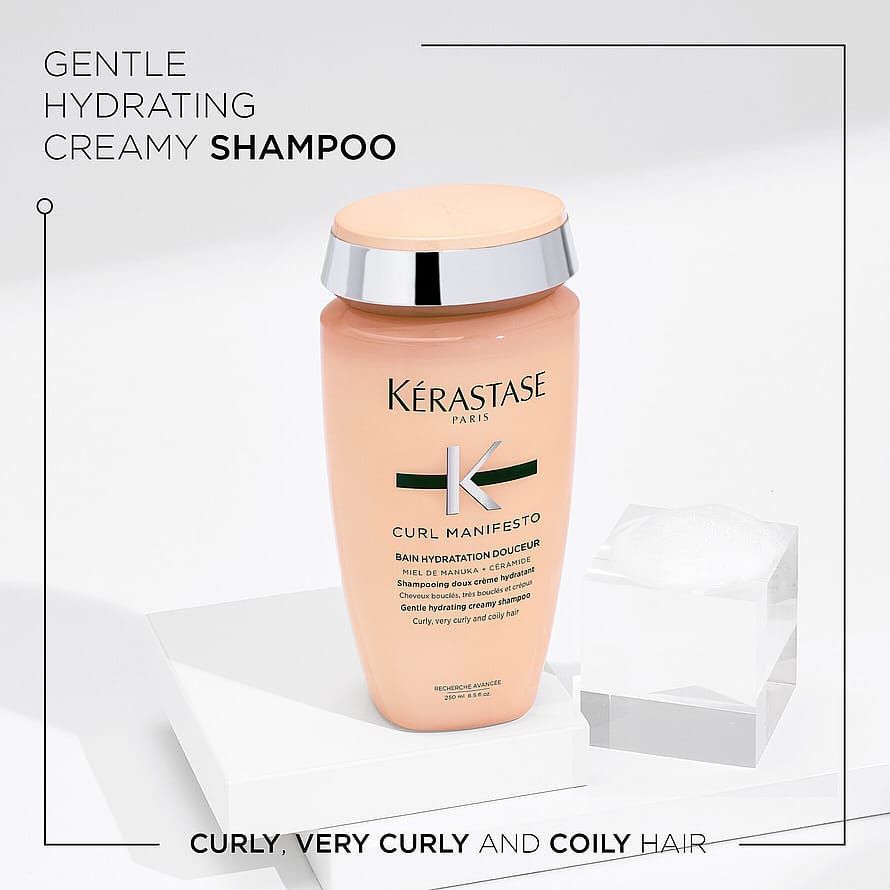 Varsamt, fuktgivande, krämigt schampoVarsamt, fuktgivande, krämigt schampo från Kérastase som är berikat med manukahonung och ceramid, för alla typer av lockigt hår. Rengör håret och hårbotten varsamt genom att avlägsna orenheter, föroreningar och produktrester, samtidigt som naturliga oljor bevaras. Tillför viktig fukt till lockar utan att tynga håret.