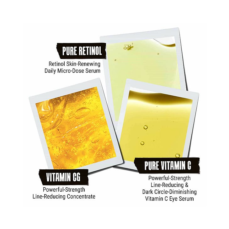 Öka hudens lyster och mjuka konsistens både dag och natt med denna samling av kraftfulla serum. Kombinera effektiviteten hos vår C-vitaminduo plus vår milda Retinol-formel för att minska uppkomsten av fina linjer, rynkor och för att strama upp ansiktet och ögonområdet med minimalt obehag.