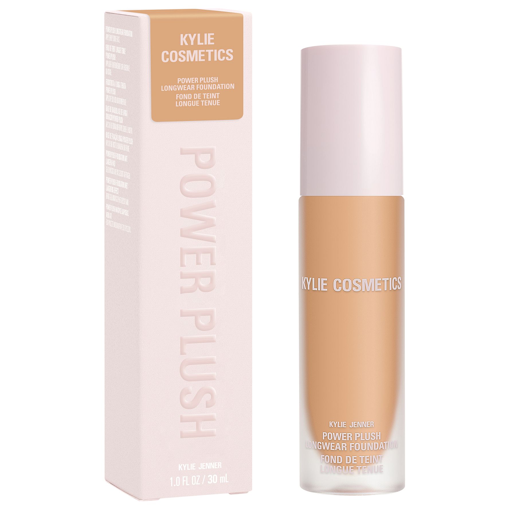 Kylie Cosmetics Power Plush Longwear Foundation är en återfuktande, omedelbart utjämnande foundation med medium, byggbar täckning som ger upp till 12 timmars bekväm vardagsanvändning. Den veganska formulan är en lätt foundation som sömlöst smälter in i huden för en naturlig look som suddar ut fina linjer, porer och textur. .Den ger en mjuk, dämpad känsla med en luftborstad satinfinish som inte är för daggig, inte för matt, utan det perfekta mellantinget.