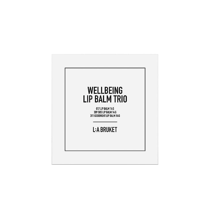 La Bruket Wellbeing Lip Balm Trio-kollektion innehåller det mycket uppskattade originalet 017 Lip Balm tillsammans med 309 SOS Lip Balm och 311 Goodnight Lip Balm har båda inspirerats av neurovetenskapliga studier som visar att multisensoriell stimulering skickar signaler till hjärnan och fungerar som en distraktion från negativa tankar och stressande känslor. Det är därför, förutom att se till att dina läppar kommer att kännas mjuka, närde och skyddade, som den naturliga doften och aromen finns där för att skicka ett extra budskap till hjänan att slappna av.
