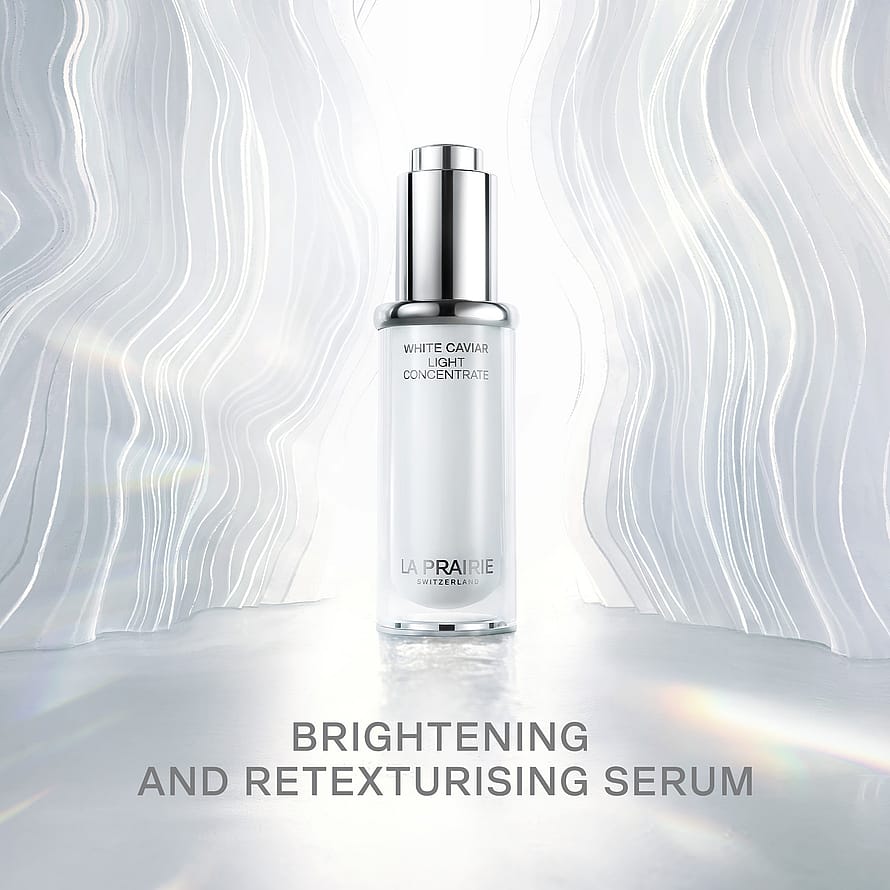 White Caviar Light Concentrate är ett koncentrerat serum utvecklat med den patenterade Lumidose™ – den mest potenta lystmolekylen som finns idag – samt La Prairies Exclusive Cellular Complex™.