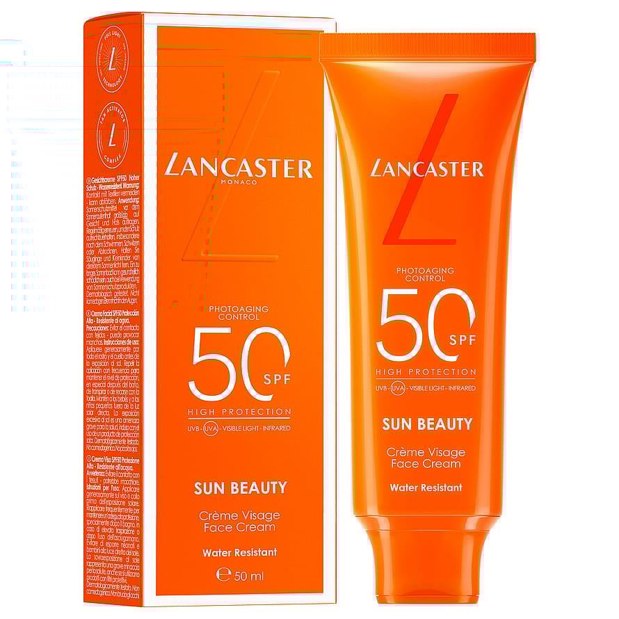 Sun Beauty Face Cream SPF50 är en lätt, silkeslen ansiktskräm som kombinerar maximalt bredspektrumskydd med en naturligt solkysst finish. Med Full Light Technology™ får huden 10x bredare skydd mot solens strålar* – teknologin skyddar inte bara mot UVA och UVB, utan även mot synligt ljus och infraröd strålning, för ett mer heltäckande skydd mot fotoåldrande. Formulan är berikad med Tan Activator Complex, som stimulerar hudens naturliga pigmentering och hjälper dig att få en jämn, gyllene ton dubbelt så snabbt vid solexponering. Den smältande texturen absorberas snabbt och lämnar en osynlig, mjuk finish utan att kännas fet – idealisk för dig som söker högt skydd utan att kompromissa med komfort eller resultat.