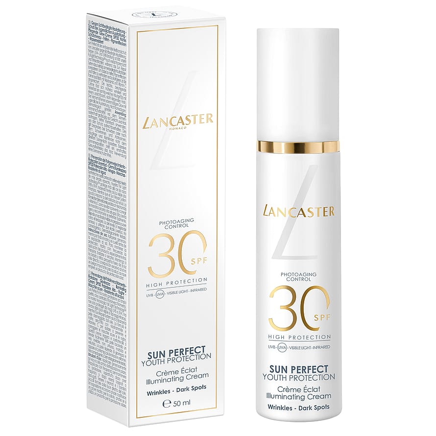 Sun Perfect Illuminating Cream SPF30 är en silkeslen, lystergivande dagkräm med bredspektrumskydd och avancerade anti-ageing-egenskaper. Med Full Light Technology™ får huden 10x bredare skydd mot solens strålar* – teknologin skyddar inte bara mot UVA och UVB, utan även mot synligt ljus och infraröd strålning, för ett mer heltäckande skydd mot fotoåldrande. Anti-Ageing Technology hjälper samtidigt till att reducera rynkor, fina linjer och mörka fläckar – och förebygger att nya uppstår. Den lätta och återfuktande formulan smälter in i huden och ger denomedelbart ett jämnare, mer strålande intryck. Perfekt som daglig ansiktskräm med SPF – och som makeupbas.