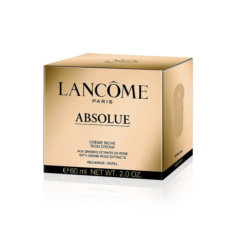 Lancôme Absolue-dagcreme har renoverats så att man nu kan köpa en refill till glasburken, det följer inte med någon spatel till refillen.