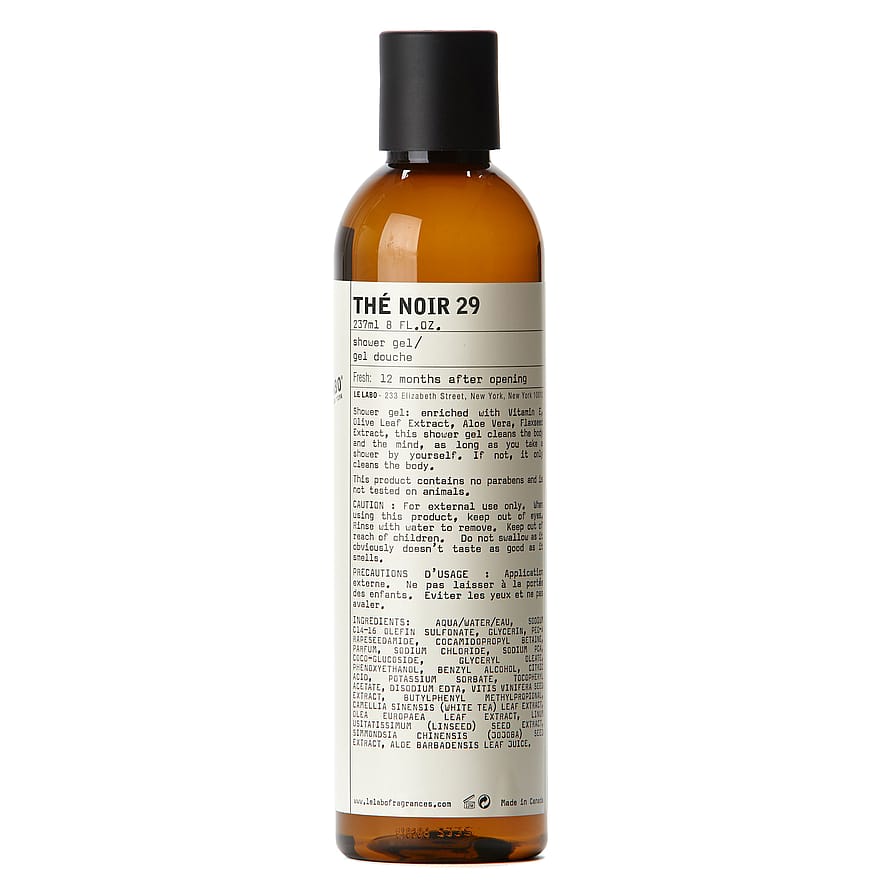 Thé Noir 29 är en hyllning till det eleganta tebladet och den kraft som omger det. Thé Noir 29 kombinerar djup och friskhet, mjukhet och styrka genom ett ständigt växelspel mellan å ena sidan ljuset från bergamott, fikon och lagerblad och å andra sidan djupet från cederträ, vetiver och mysk. En unik extraktion av svarta teblad avrundar kompositionen genom att ge formulan en torr, lövig, höig tobakskänsla för att förvandla skapelsen till en sinnlig och beroendeframkallande essens. Denna duschgel är berikad med vitamin E (antioxidanter), olivbladsextrakt (återfuktande egenskaper), aloe vera och linfröextrakt, och rengör huden och renar sinnet så länge du tar en dusch på egen hand. I annat fall rengör den bara huden. Vegansk.