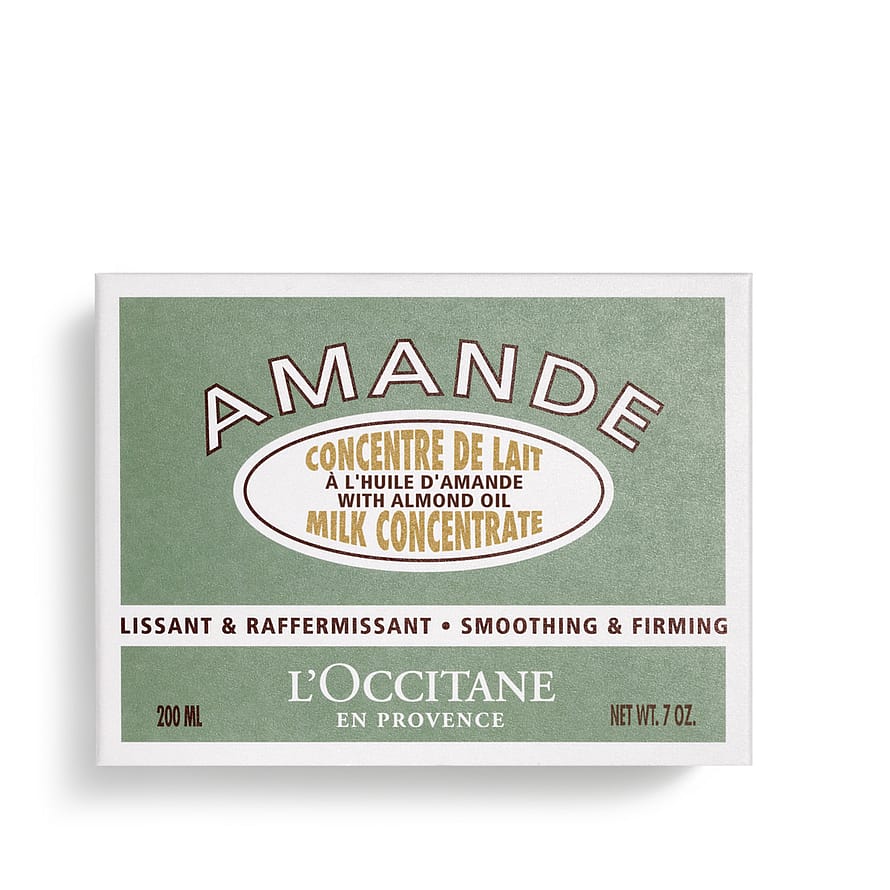 Almond Milk Concentrate är en lyxigt återfuktande kroppskräm som smälter in i huden på ett fantastiskt sätt. Tack vare en hög koncentration av mandelmjölk och olja ger den näring åt huden och lämnar den silkesmjuk. Denna kroppskräm återfuktar och mjukgör huden, dessutom hjälper den till att strama upp huden och göra den fastare. Berikad med 95% naturliga ingredienser hjälper krämen till att bevara hudens elasticitet och stimulerar cellförnyelsen så att huden känns slätare. Mandelnöten, som växer skyddad i ett grönt och mjukt skal, är känd för sin förmåga att göra huden mjuk och len. Vi är engagerade i att stödja lokala producenter och har åtagit oss att köpa mandel från producenter i södra Frankrike. På så sätt bidrar vi till att mandelträdet, som sedan länge varit bortglömt i regionen, återigen blir ett välkänt inslag i det provensalska landskapet.