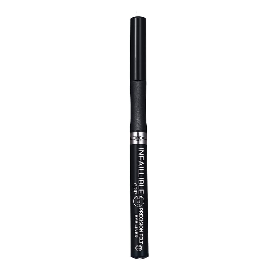 Infaillible bold lines all day, every day! L'Oréal Paris Infaillible Grip 24H Precision Felt eyeliner har en tunn filtspets på 0,4 mm* så att du kan skapa exakta linjer som håller i upp till 24 timmar**. Design som ger bra grepp för kontrollerad och enkel applicering. Vattenfast formula. - 24H** stadga. - 0,4 mm* tunn filtspets. - Vattenfast, smetar inte ut. *Genomsnittligt uppnått resultat vid instrumentellt test. *Självutvärdering, 112 personer.
