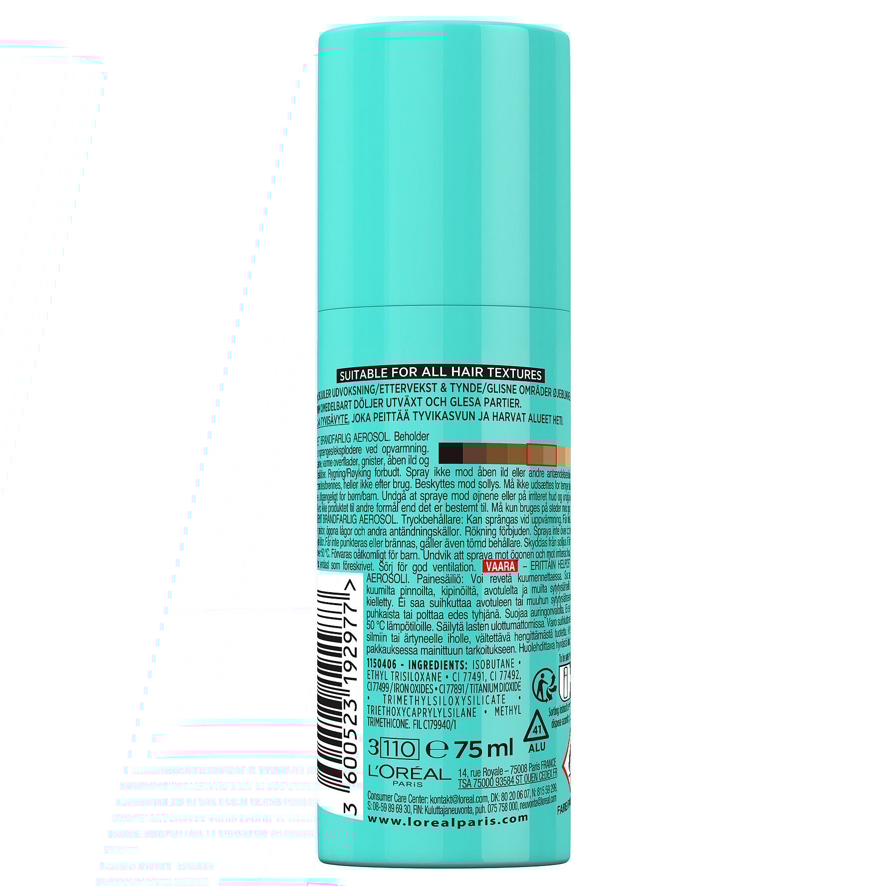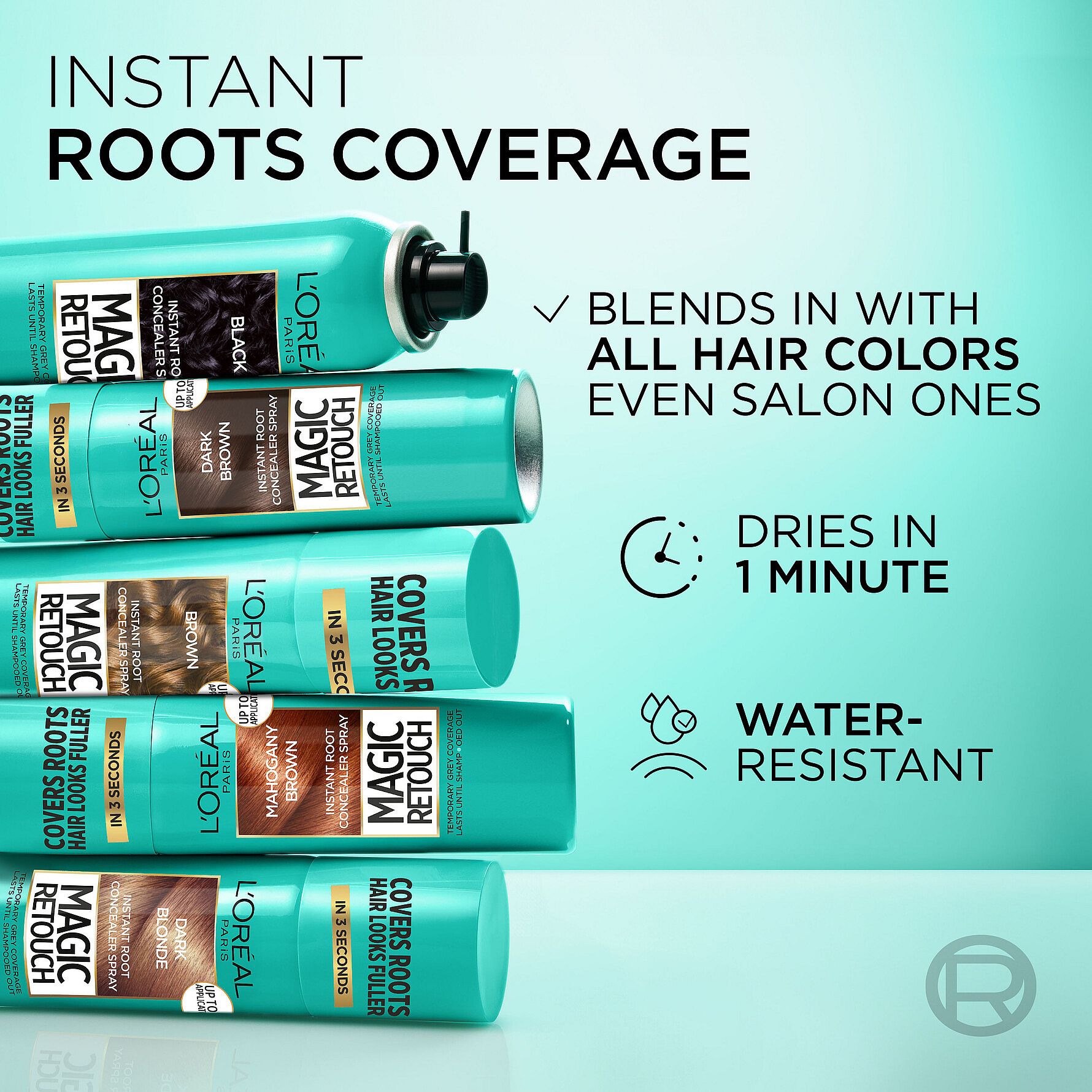 L'Oréal Paris Magic Retouch Roots låter dig snabbt och enkelt fräscha upp ditt hår och färga utväxt. En effektiv spray för utväxt för de gånger du inte har tid att besöka frisören men behöver en snabb lösning för att färga din naturliga utväxt. L'Oréal Paris Magic Retouch Roots smälter in perfekt i din nyans, och resultatet är både naturligt och hållbart. Den kladdfria formulan ser till att ditt hår ser felfritt ut, och håller till nästa schamponering.