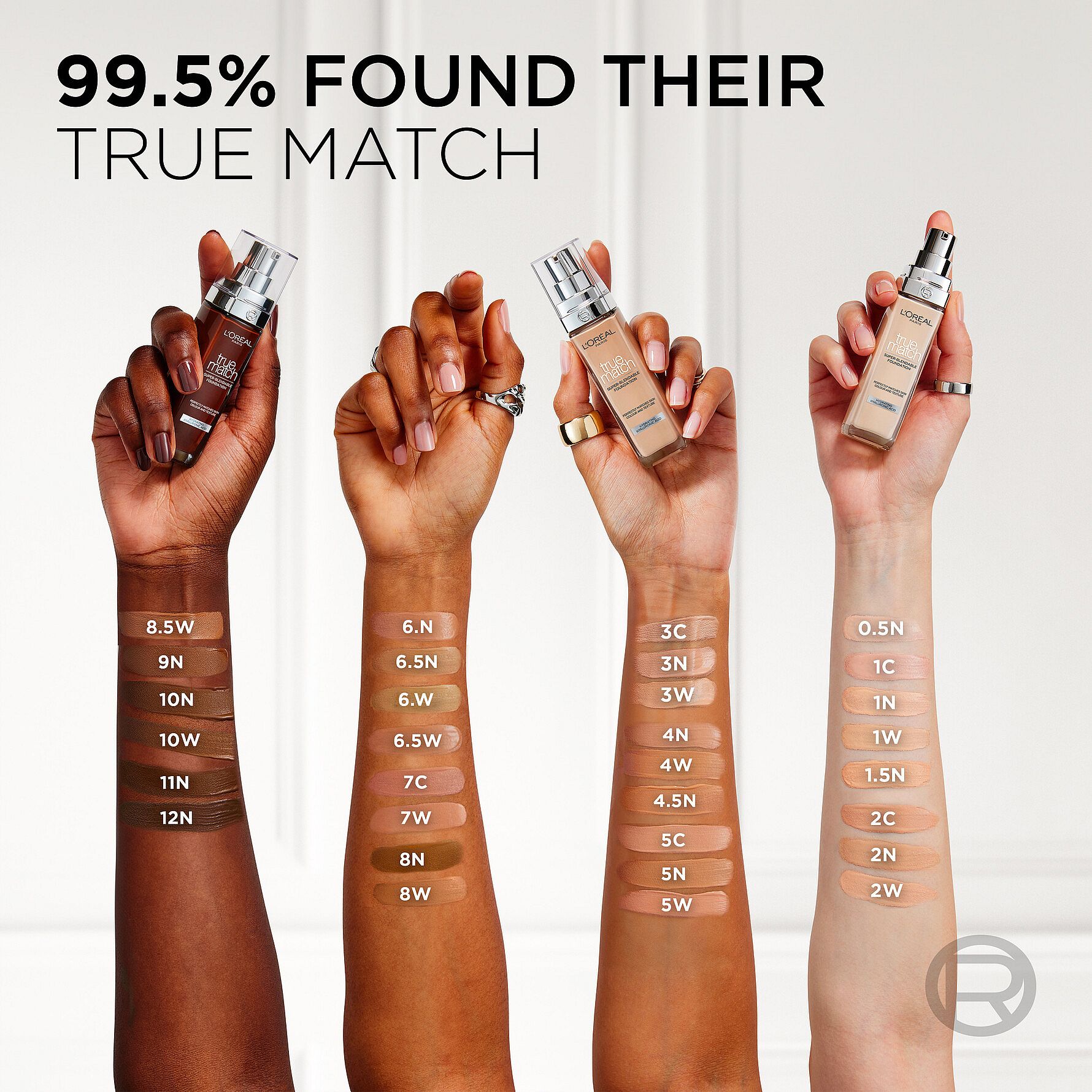 För att göra det lättare att hitta rätt nyans: C står för cool (kall underton), W för warm (varm underton) och N för neutral (neutral underton). Detta visar vilken hudton nyansen passar bäst till.