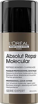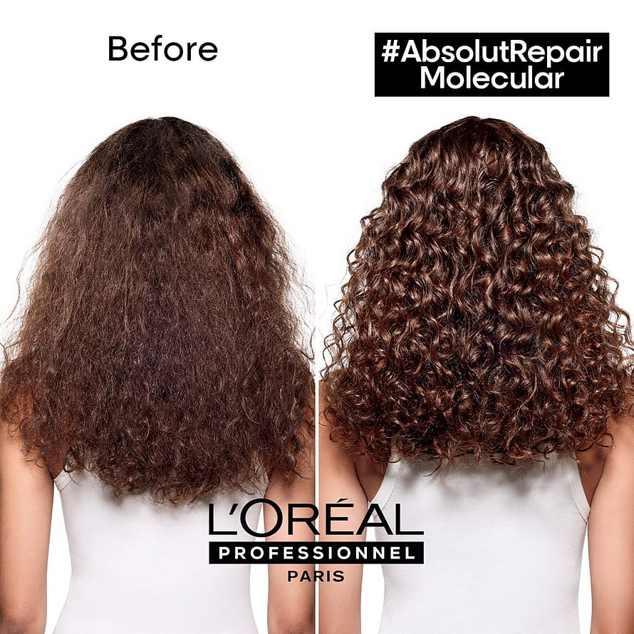 [BE OM ABSOLUT REPAIR MOLECULAR-SALONGSBEHANDLINGEN] vid ditt nästa salongsbesök, be din frisör om ABSOLUT REPAIR MOLECULAR-programmet för att reparera hårets molekylära struktur****** och reparera 2 års skador vid en användning*. För starkare hår med återställd elasticitet och livfullhet.
