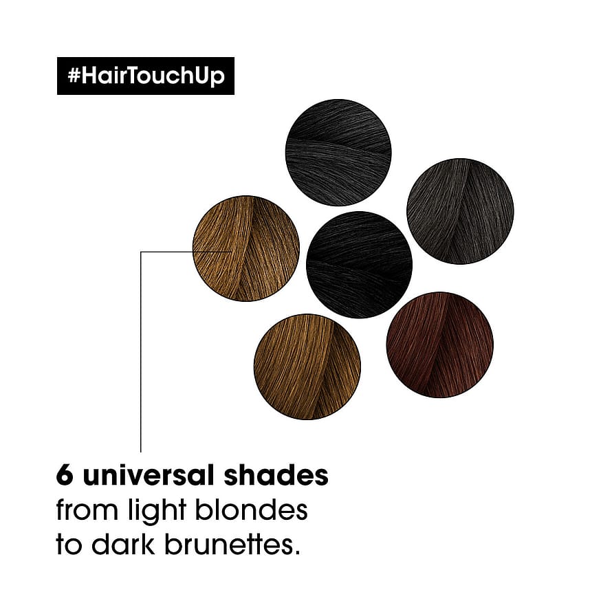 Hair touch up ger dig chansen till en optimal hårfärg, även när utväxten börjar synas. Denna teknologi gör det möjligt att, på egen hand, dölja utväxt mellan hårfärgningar. Sprayen tillåter en precis dosering, som skapar en naturlig övergång.