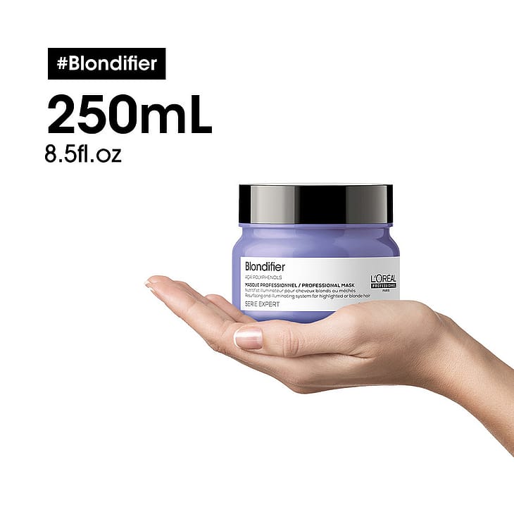 Reparerande och ljusreflekterande* professionell hårinpackning för slingat eller blont hår. Berikad med extrakt av acaibär som innehåller polyfenoler. Formulan fyller, mjukgör och ger näring till hårfibern vilket framhäver det blonda hårets multidimensionella glans*. *Instrumentellt test Blondifier: Gloss shampoo + balsam.