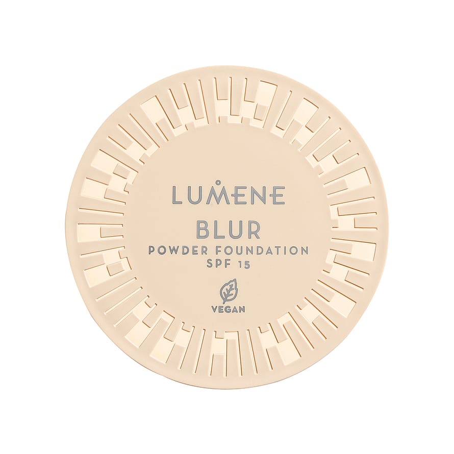 Blur Longwear Powder Foundation SPF 15 är en 2-i-1-puderfoundation som kombinerar en foundations korrigerande egenskaper med en utsuddande effekt som gör att huden omedelbart ser jämnare och felfri ut. Det veganska pudret torkar inte ut huden och innehåller lystergivande nordiska hjortron och inkapslad fuktgivande hyaluronsyra. Pudret har en behaglig parfymfri konsistens som smälter in i huden och ger en sammetslen matt finish. Perfekt att använda som det är, över foundation eller för att förbättra makeupen under dagen. Puderförpackningen kan återvinnas eller återanvändas och är delvis tillverkad av återvunnet material. Tillverkad i Finland