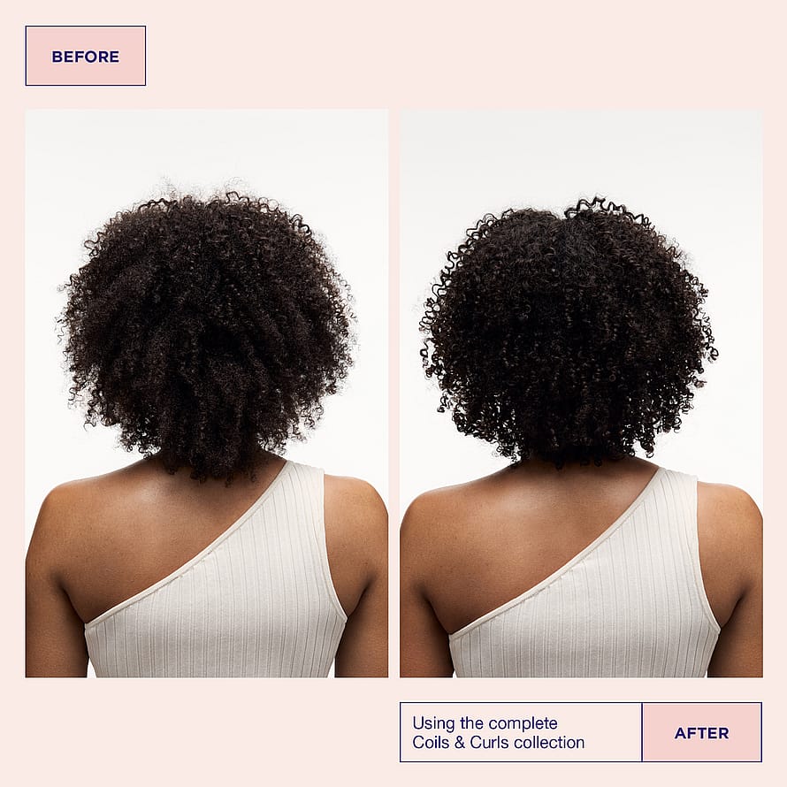 För att reda ut dina lockar och ge mer definition rekommenderar vi att du avslutar med att applicera Coils & Curls Oil In Cream i blött hår och kammar igenom håret med dina fingrar. Krama sedan håret nedifrån topparna och upp mot hårbotten för att framhäva lockarna.