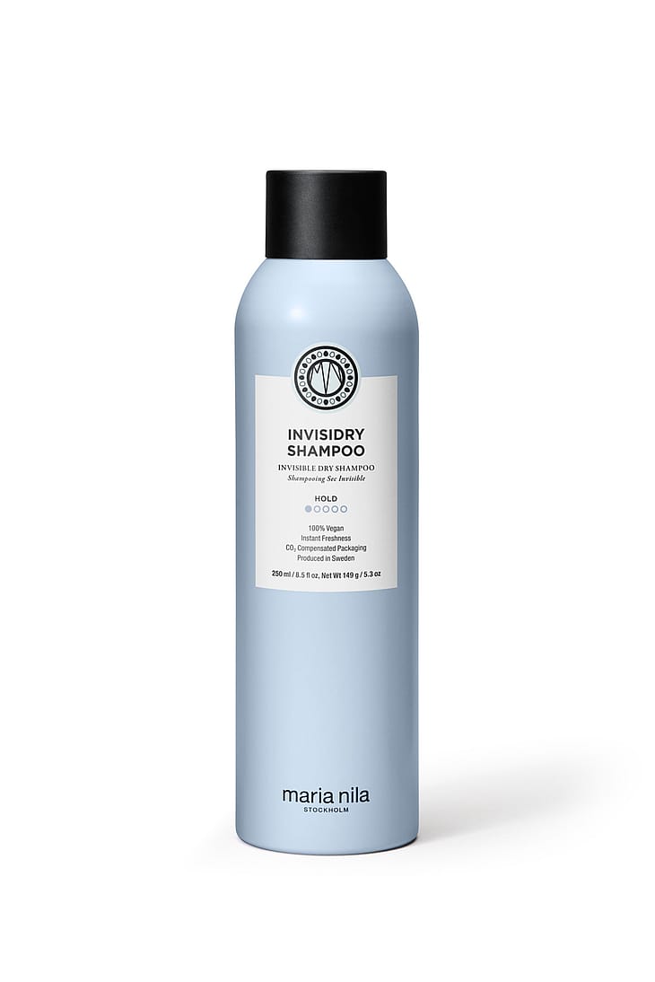 Ett lätt torrschampo i sprayform som snabbt fräschar upp smutsigt hår och hårbotten mellan tvättar. Produkten absorberar upp fett från hår och hårbotten och ger en känsla av nytvättat hår. Till skillnad från Maria Nila Dry Shampoo, så ger Invisidry Shampoo lättare stadga och lämnar ingen synlig produkt i håret tack vare sin innovativa formula. Den passar därför perfekt till både blont och mörkt hår. Invisidry har en fruktig doft av passionsfrukt och äpple. Färgbevarande Colour Guard Complex skyddar ditt hår mot UV-strålning och fria radikaler.