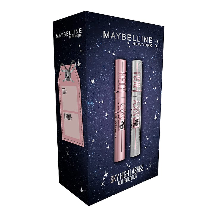 Presentasken innehåller vår bäst säljande mascara Sky High Black som ger oändlig längd och volym och har en flex-borste för fullständig täckning från rot till topp. Formula berikad med bambuextrakt och passar för den med känsliga ögon och kontaktlinsbärare.