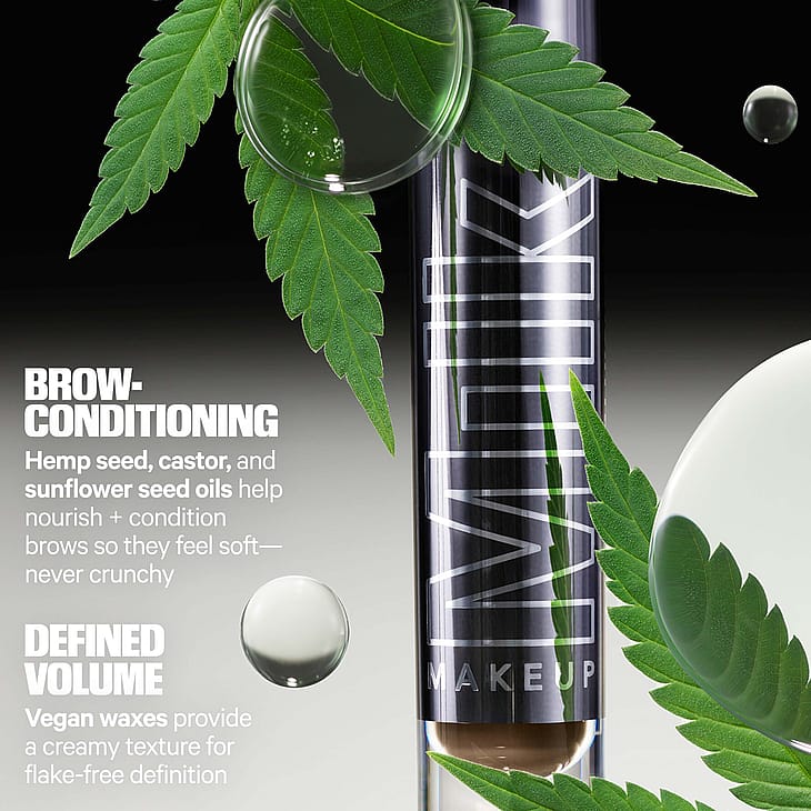 En första-i-sitt-slag, färgad ögonbrynsgel i tubformat, som ger volym och fixerar brynen i upp till 24 timmar. Denna innovativa alkoholfria tub-formulan omsluter varje enskilt strå i mikroskopiska tuber som färgar ögonbrynen (inte huden under) för en definierad look som inte flagar eller smetas ut. Vårdande hampaderiverad cannabisfröolja och vax från växter håller brynen mjuka - aldrig styva. Lätt att tvätta bort med rengöring och varmt vatten. 100% vegansk.