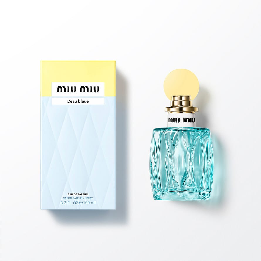 En feminin blommig grön doft från Miu Miu, L’Eau Bleue är en söt viskning på en mulen dag, som blåser bort det grå för att avslöja himmelens azurblå utstrålning. Frisk och klar. Vårens lätta och delikata ynde vaknar. Täckta med daggdroppar blommar liljekonvaljens små vita klockor, kantade med sammetslena blad. • Toppnot: Liljekonvalj-ackord • Hjärtnot: Violblad-ackord • Basnot: Vit mysk