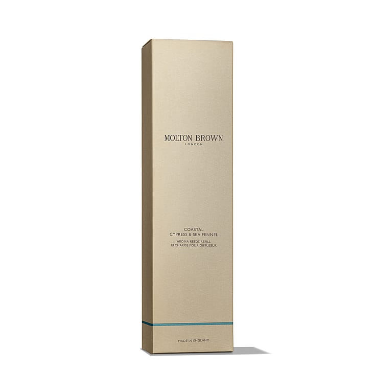 Med Molton Brown Coastal Cypress & Sea Fennel Aroma Reeds Refill kan du fylla på oljan till dina doftpinnar och fortsätta njuta av denna havsinspirerade doft av uppfriskande cypress, fräscha marina noter och svala kryddor. Molton Browns doftpinnar är eleganta inredningsdetaljer som sprider en symfoni av inbjudande dofter i ditt hem. Förhöj doftupplevelsen i ditt hem ytterligare genom att kombinera med Molton Browns matchande doftljus.
