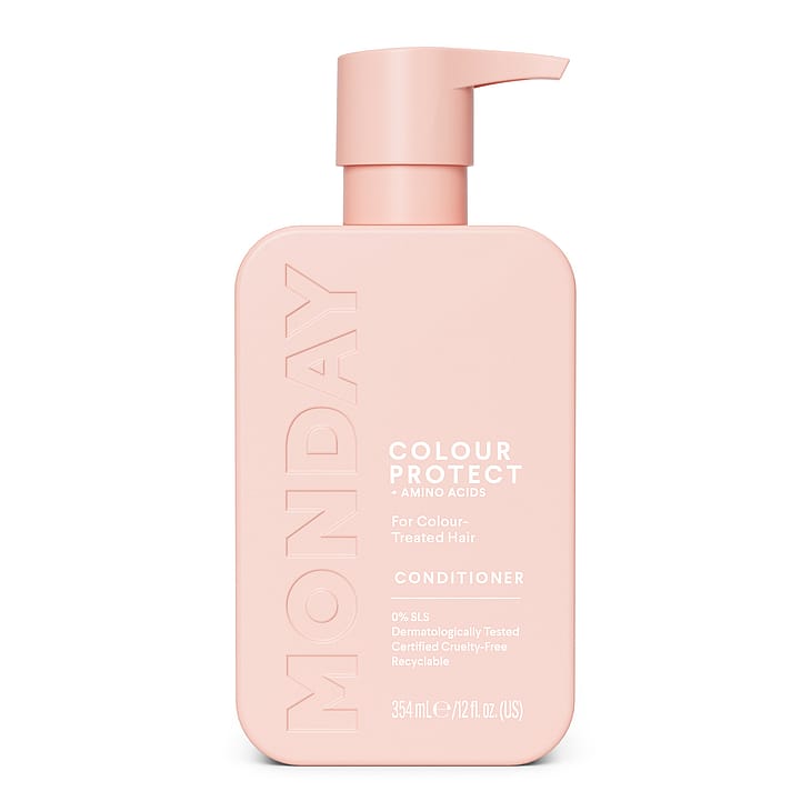 MONDAY Haircares COLOR PROTECT Conditioner innehåller aktiva ingredienser, essentiella aminosyror och närande naturliga ämnen som E-vitamin och Jojobaolja för att förhindra att färgbehandlat hår bleknar – och lämnar det med extra liv och glans. Aminosyror hjälper till att stödja hårets proteinhälsa, jojobaolja innehåller vitaminer som hjälper till att stärka håret och vitamin E främjar hårets glans. Formulan är även pH-balanserad, dermatologiskt testad, parabenfri och sulfatfri. Dessutom är MONDAY Haircare godkänd som cruelty free under programmet Leaping Bunny och är PETA-certifierat som ett varumärke som inte testar på djur. Med MONDAY kan varje dag vara en bra hårdag!