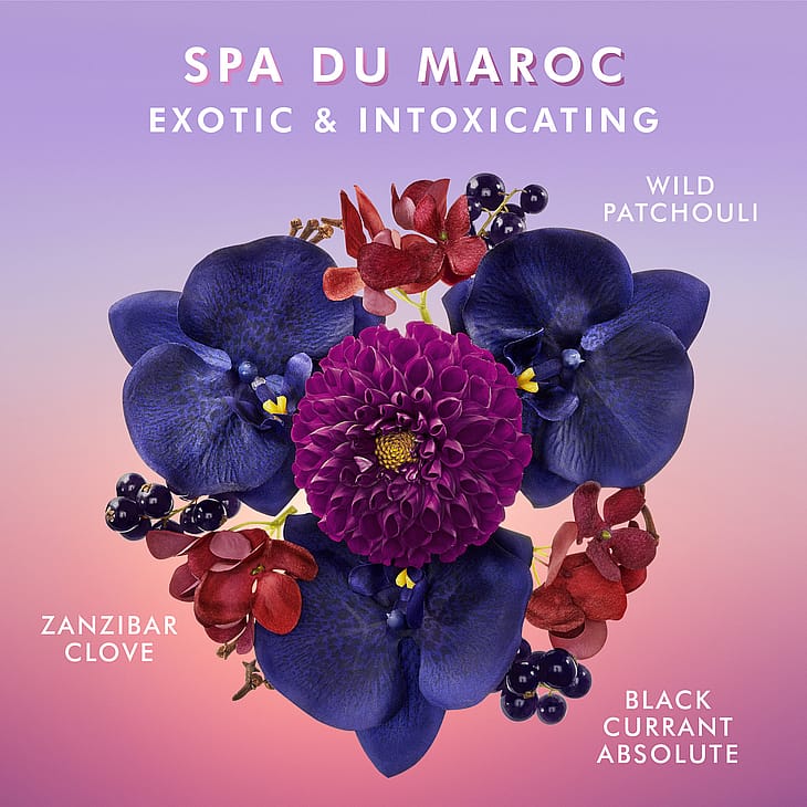Spa du Maroc - Exotiskt och berusande. Zanzibar-kryddnejlika och vild patchouli (lavendel vanilj).