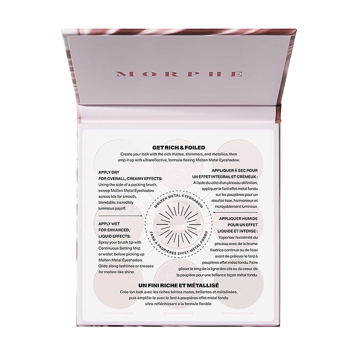 Upptäck en mängd möjligheter på ett ögonblick med Morphe Rich & Foiled Ögonskuggspaletter. Inspirerade av den ostoppbara lockelsen hos ädelmetaller, dessa överdådiga och uttrycksfulla nio-pans kureringar höjer ögonkonsten med lyxiga matta, skimmer och metalliska nyanser - plus, en kronjuvel: en debut foil-effekt Molten Metal Ögonskugga. Applicera den torr för en övergripande, krämig, otroligt lysande effekt eller våt för förstärkt, smältliknande glans.