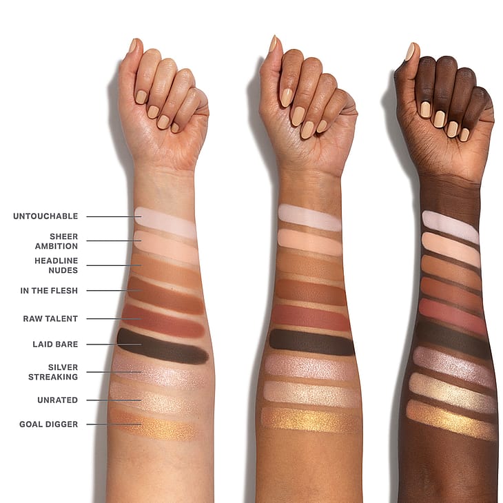 18 trendande neutrala färger. Upptäck en palett med universellt smickrande neutrala färger som är formulerade för att byggas upp, blandas och läggas i felfria lager, och som sedan väljs ut för att skapa ambitiösa effekter i bara tre steg. Varje rad innehåller tre kompletterande skuggor som definierar, ger lyster och djup på ett ögonblick för en enkel look som du kommer att känna dig naken utan.