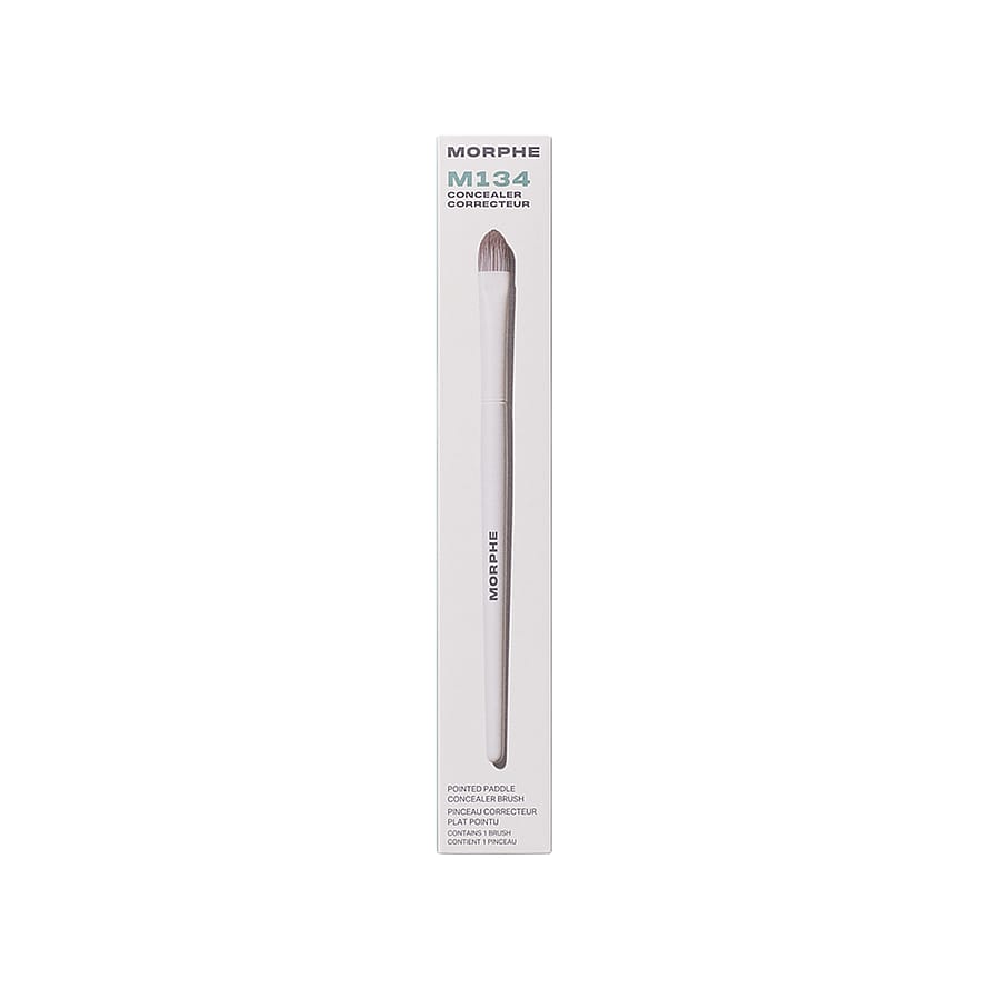 Morphes spetsiga paddelformade concealerborste M134 har ett robust huvud som kan böjas. Använd den platta, paddelformade sidan för att applicera concealer med ett enda tryck, och precisionsspetsen för att göra rent linjer runt ögon, näsa eller läppar.
