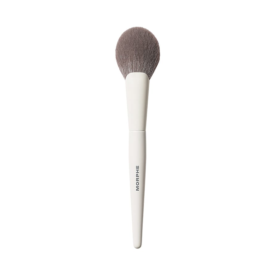 Morphes paddelformade puderborste M163 har en lång, fluffig och flexibel spets. Denna spets stryker på puder smidigt och jämnt och sveper sedan bort överflödigt puder, vilket förhindrar att du lägger på för mycket. Resultatet? En idiotsäker mjuk, beslöjad finish. Använd den för att fixera – eller för att fullända med puderfoundation.